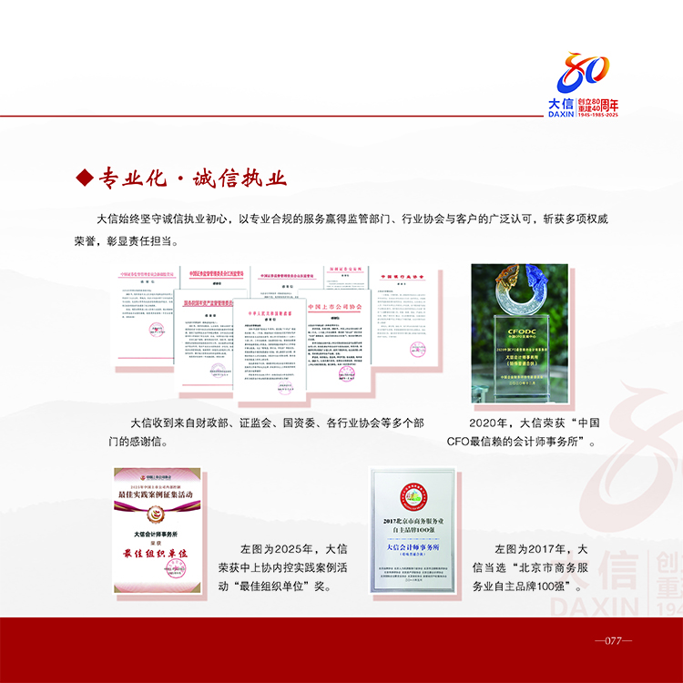 大信创立80周年重建40周年纪念册