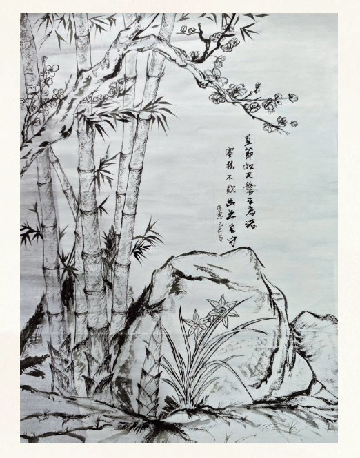 2.构图:直节如尺,磐石为诺,寒枝不欺,幽兰自守